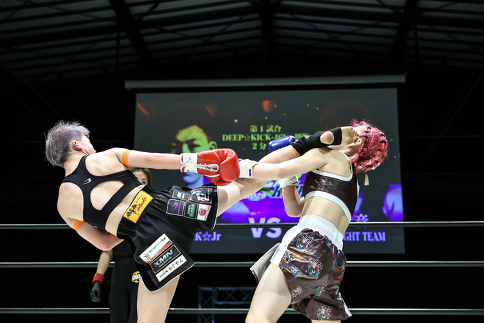 ともに兄はDEEP☆KICK王者になっている者同士という注目の女子マッチが実現した。ののかの兄は-60kgの第10代王者である健真。一方、牧野の兄は-57.5kgの第5代王者である牧野騎士。ののかはジュニア時代から頭角を表していたBLACK☆Jr期待の女子ファイターだ。天音のセコンドには兄とともに同門のきたりこが就く。