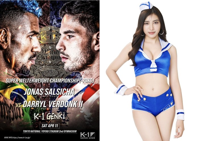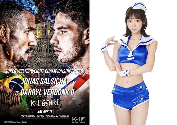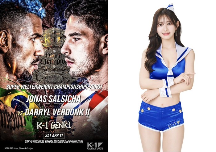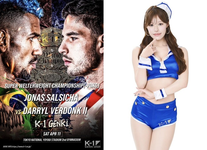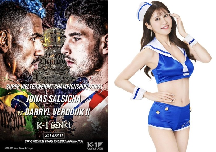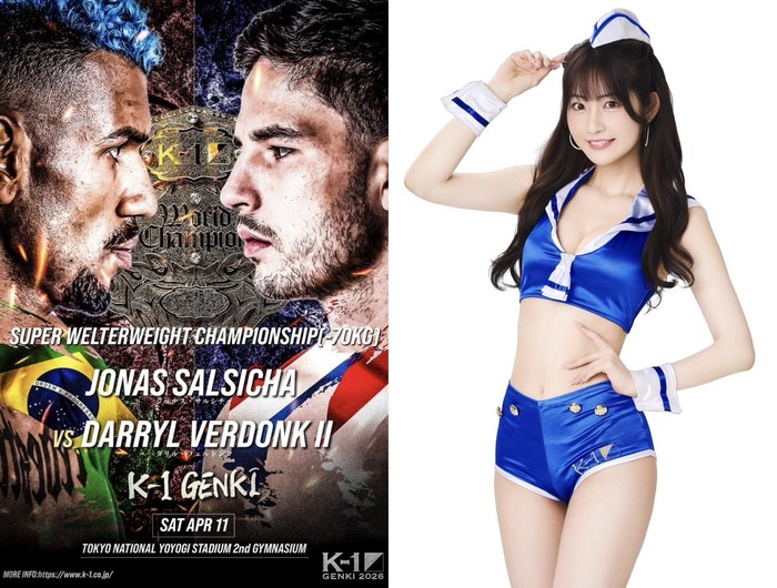 2026年4月11日(土)東京・国立代々木競場第二体育館『K-1 GENKI 2026』のメインイベントにて行われる、ジョナス・サルシチャ(ブラジル/TF Team/CT Allan Popeye)vs.ダリル・フェルドンク(オランダ/Fight Team Ringer)の「第6代K-1 WORLD GPスーパー・ウェルター級王座決定戦」の勝敗予想を、今大会が初舞台となる「K-1 GIRLS 2026」のメンバーが予想した。