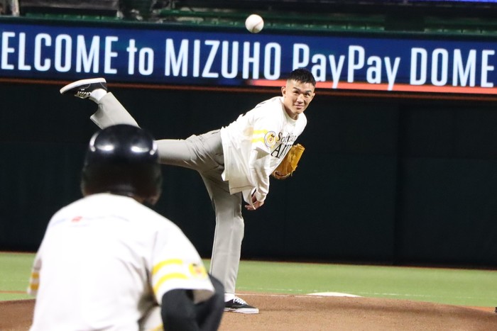 2026年4月9日(木)、みずほPayPayドーム福岡で開催のプロ野球公式戦「福岡ソフトバンクホークス vs 埼玉西武ライオンズ」にて、萩原京平(SMOKER GYM)がセレモニアルピッチの投手を務めた。今回の企画は、4月12日(日)『RIZIN LANDMARK 13 in FUKUOKA』(マリンメッセ福岡A館)大会開催のRIZINと、福岡拠点のソフトバンクホークスとのクロスプロモーションによるもの。