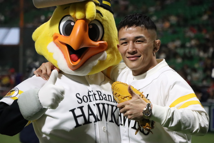 「めざせ世界一」をスローガンに掲げるホークスの選手と交流することで刺激を受け、「いまRIZINもどんどん強い海外選手が入ってきているので、自分もそういうやつらと戦っていきたいんで、今回はそのための第一歩。ここで負けていては話にならないんで、もっと強い外国人とやっていけるというのをここで証明したい」と意気込む。