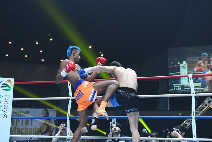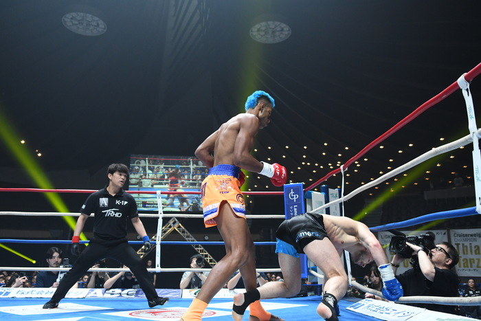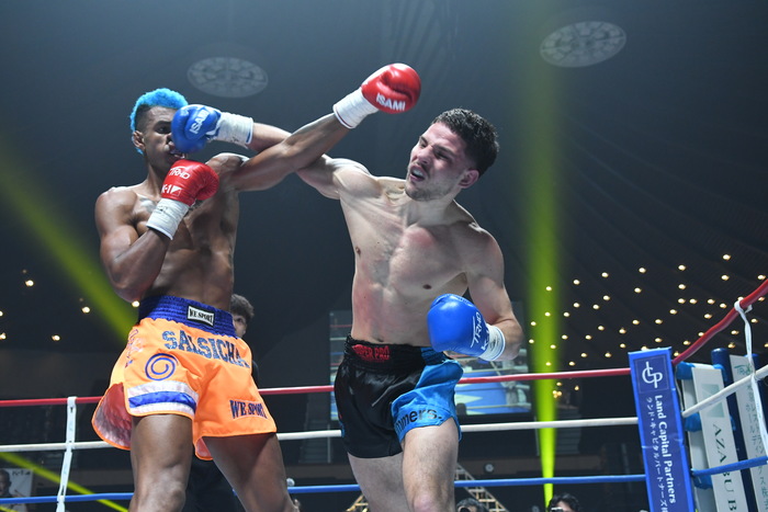 1R、サルシチャが前蹴りを放つとフェルドンクはいきなり連打で距離を詰める。しかし、この打ち合いに応じたサルシチャが右フックでダウンを奪った。入って来るフェルドンクを左ボディ、右フック、ヒザで迎え撃つサルシチャ。フェルドンクはロープを背負い、サルシチャの左ボディに苦しみながらも打ち返す。