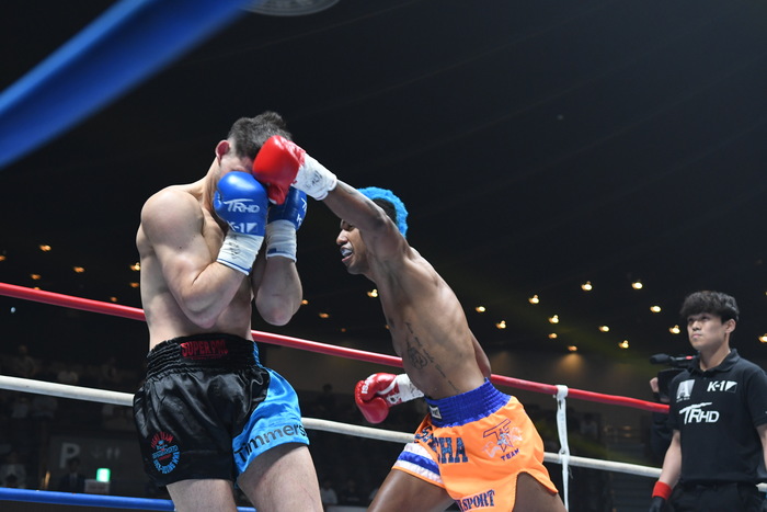 サルシチャは左右フック、左ボディ、ヒザ、さらに左右フック、ヒザ。フェルドンクは右フックを打ち返す。サルシチャの強打を浴び、一方的な展開になりながらも必死に打ち返すフェルドンク。サルシチャの顔面前蹴り、ワンツー、左アッパーがヒットし、大ピンチのフェルドンク。