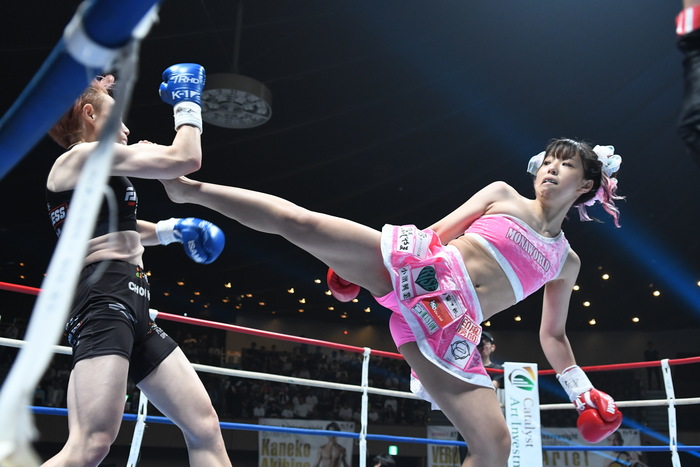 2024年11月にKrushデビュー戦でボクシング仕込みのパンチの技術を見せつけて初回KO勝ちを飾ると、2戦目のYuka☆戦では空手仕込みの蹴り技を多用。1Rから3Rまで、まるでジャブのようなサイドキック(モナ蹴りと命名)を顔面とボディへ次々と蹴っていき、相手を全く近づけさせないワンサイドゲームでフルマークの判定勝ち。6月の小澤聡子戦では相手を大流血に追い込んでTKO勝利を飾り、戦績は3勝(2KO)無敗。