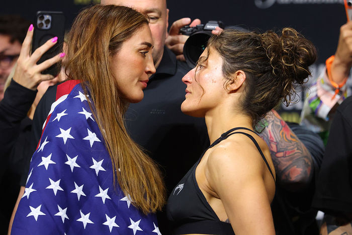 メキシコのゴディネスは32歳。UFC9勝5敗(2一本勝ち)。キャリアでは14勝5敗(3一本勝ち)。グラップリングが武器だが、2024年はヴィルナ・ジャンジロバとマッケンジー・ダーンという、10月に王座決定戦で対戦した柔術家2人に連敗。それ以前は4連勝しており、昨年も2連続判定勝ち。