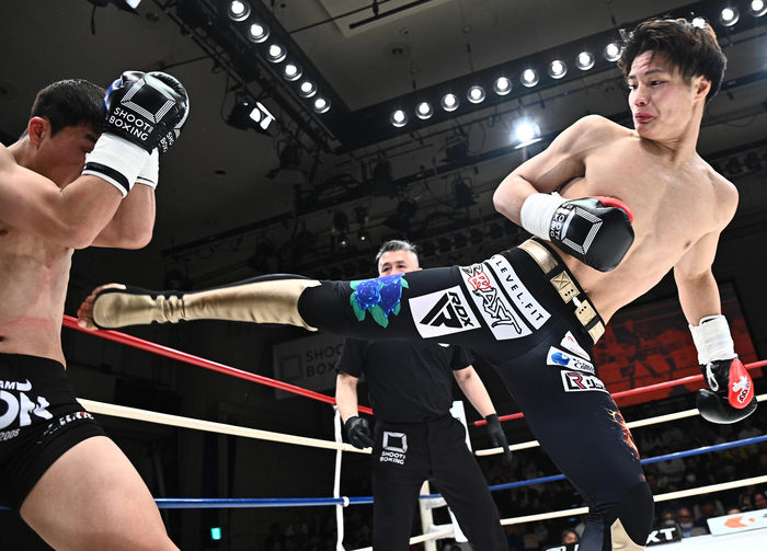 1R、山田は左ミドルからジャブ、もう一度左ミドルを蹴るとこれがローブローになってしまい中断に。再開後、また前に出る山田が左ボディ。右フックを打つと打ち返してきたソンボムを右ストレートでフラつかせる。