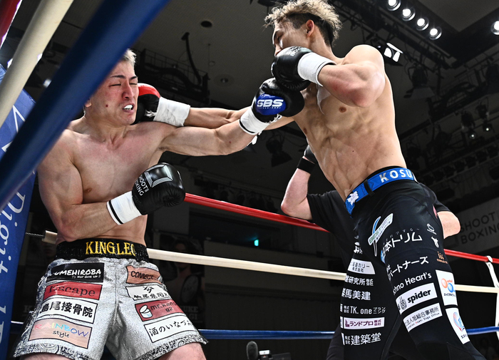 吉瀧はバックハンドブロー。都木が左奥足ロー、吉瀧は左右フック。都木は組むとヒザを見舞う。都木の左ミドルに吉瀧はバックハンドブロー。都木の左ボディに左腕を下ろす吉瀧。都木は右ストレートからの左インローで崩し、吉瀧の右ストレートをかわすと右ハイキック。