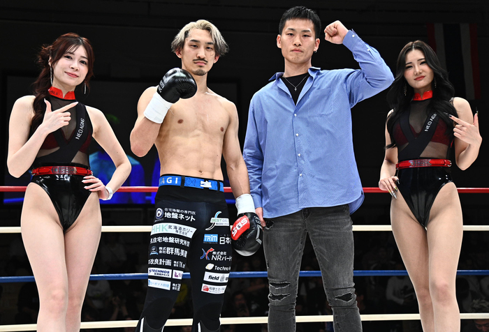 風間は「試合内容次第で、盛り上がらなかったらオープンフィンガーでって提案しようと思ったんですけれど、でも今試合を見ていたら攻めの姿勢が強くてアツいダウンの応酬行けそうだなって思ったので、いい試合しましょう」とメッセージ。都木が「戦い方は風間くんに学んでいるので(笑)」と返すと、風間は「どっちかが倒れるKOで」と、KOで決着をつけようとした。さらには「シーザー会長、この試合6月のメインでお願いします」とアピールした。
