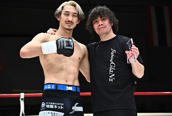 都木は「前回11月に負けてからの今回再起戦だったんですけれども、そこから映像でも流れているように土井(広之)さんに指導していただいてから凄く充実した時間を過ごしてきているんですけれども、今回が練習してから初の実戦の場ということで今までの感覚と違う気持ちの面があったんですけれど、どうやってやろうかなってちょっと最初動きが堅かったんですけれども、1RでKOできたので良かったと思っております。次、風間くんに6月防衛戦と言われているので、次こそは怪我治してもらって6月戦えるように頑張りましょう」と、次は1位の風間大輝との防衛戦をアピール。