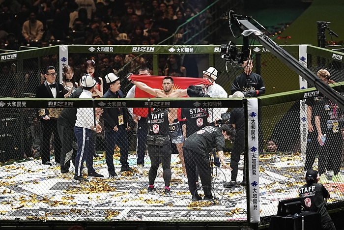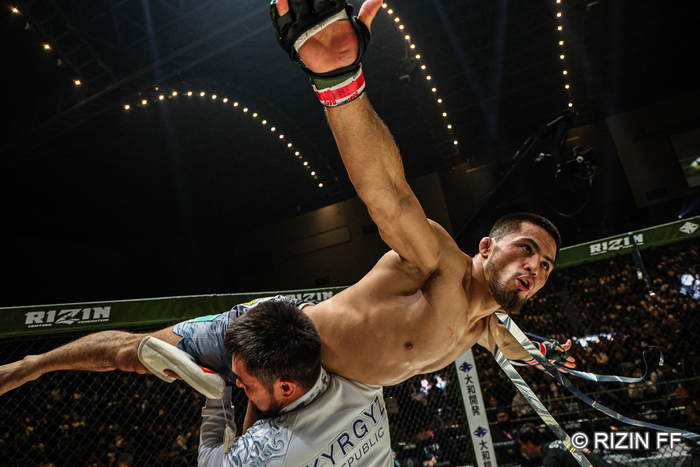 シェイドゥラエフはマイクを持つと「こんにちは福岡。応援していただいてありがとうございます。私の日本のファンの皆さん、福岡の皆さん、私はみんなが大好きです。キルギス万歳、いつもありがとうございます。19戦無敗です。私のチームに感謝します。社長、私はRIZINの中で適切な対戦相手がいないと思うので、次はUFCかPFLか他の団体の最強の男と対戦したいのでよろしくお願いします」とアピールした。