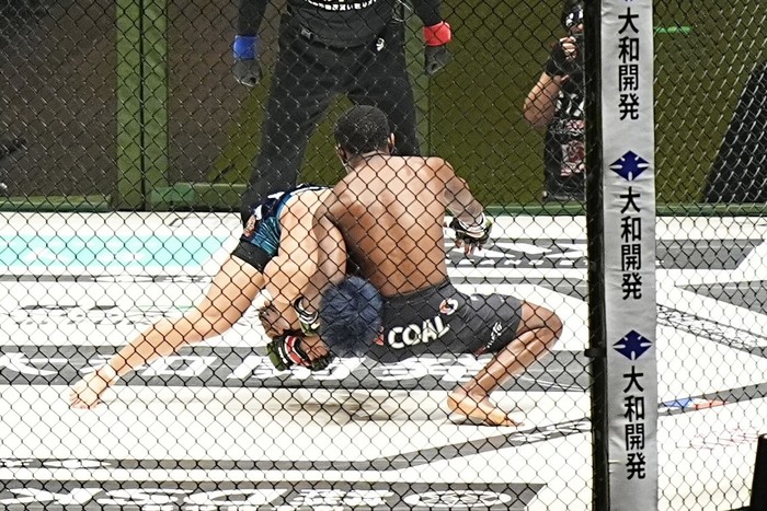 1R、サウスポー構えの神龍、ズールーはスイッチしつつオーソに。神龍の右インローは空振り。中に入っていく神龍は、ズールーの蹴り返しに足を掴んでシングルレッグの神龍。バックを狙うズールーを徐々に背中をつかせてアームロックのプレッシャーをかけてサイドにパス、右腕を肩口まで絞り、最後は頭をまたいでキムラを極めた。ズールーは左手でタップした。
