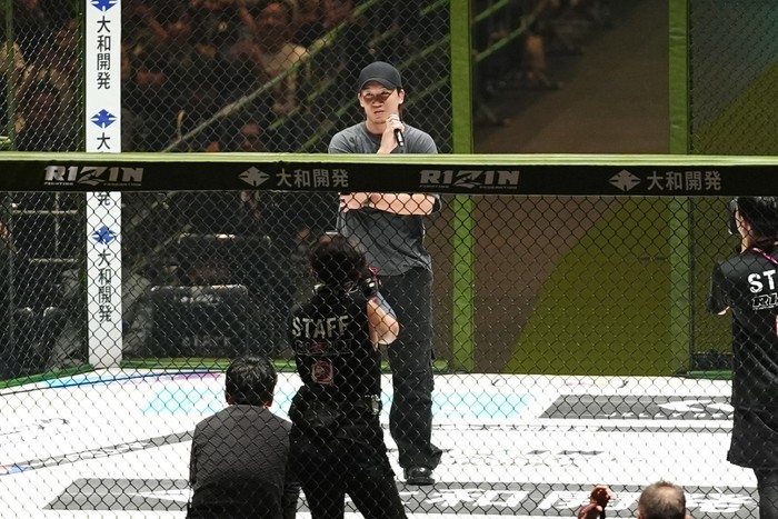 2026年4月12日(日)、マリンメッセ福岡A館にて開催された『RIZIN LANDMARK 13 in FUKUOKA』に、朝倉未来(JAPAN TOP TEAM)が登場。大歓声で迎え入れられた。