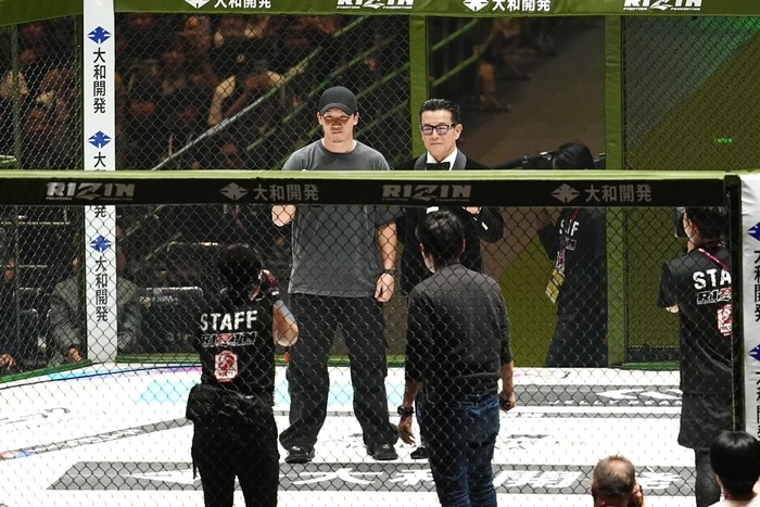 朝倉は「RIZINの会場でBreakingDownの宣伝するのは心が引けていたんですけれど、社長が行けって言ってくれたので」と話すと、榊原信行RIZIN CEOは「芦澤が負けちゃったので、大きいこと言えないんだよな」と苦笑。