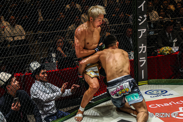 ――2分ぐらいのタイミングで、久保選手が金網に押し付けられるぐらいのところで、久保選手のヒザがシェイドゥラエフ選手に入ったかなって思うような場面があったんですけど、その瞬間、感触っていうのはどうですか?