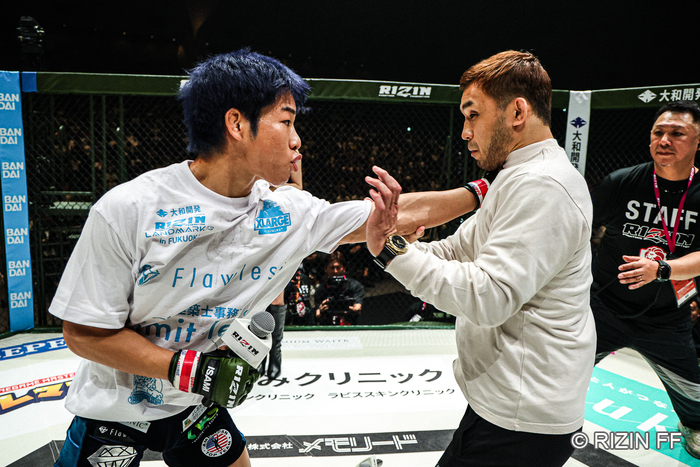 「神龍誠選手、素晴らしい、本当に神龍選手自身の成長をすごく感じられる試合、結果というか展開だったかなと思います。堀口選手も結構手こずったズール選手を難なく一本取ったあの神龍選手。まあ“春のズールー”はあまり強くなかったっていう感じなのかどうか分からないですけど、そう感じさせるぐらい圧勝だったと思いますんで、6月6日の仙台(ゼビオアリーナ大会)での因縁の兄弟子・扇久保博正チャンピオンとの一戦に期待を寄せる次第ですが、ひょっとすると世代交代を起こしてくれるんじゃないかっていう、そんな予感を感じさせるというか、自分の故郷、地元仙台で扇久保からベルトを奪うっていうようなドラマチックなことが起きたらすごいなと、そんなことを思いながら、6月6日の準備にしっかり進んでいけたらと思っております」