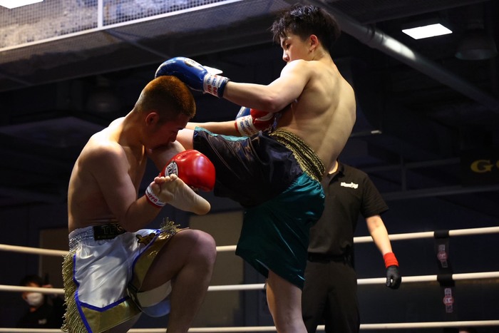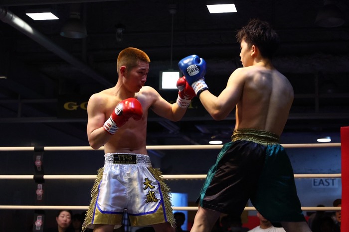 3戦1勝(1KO)2敗の19歳・大成と、Stand upアマ関西GP2025vol.1優勝の実績があり、今回プロデビュー戦となる18歳・裕二の新鋭対決。なお、前日計量で大成は再計量で400gオーバーしたため、減点1からのスタートとなった。