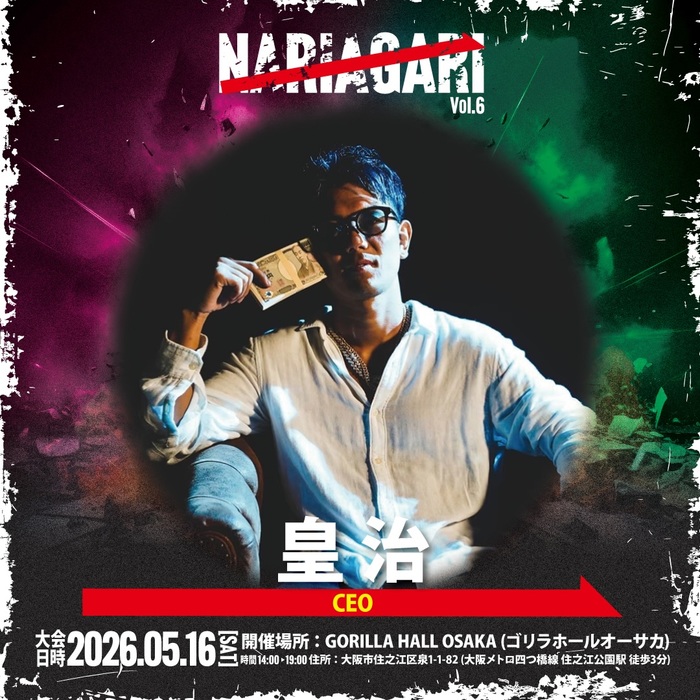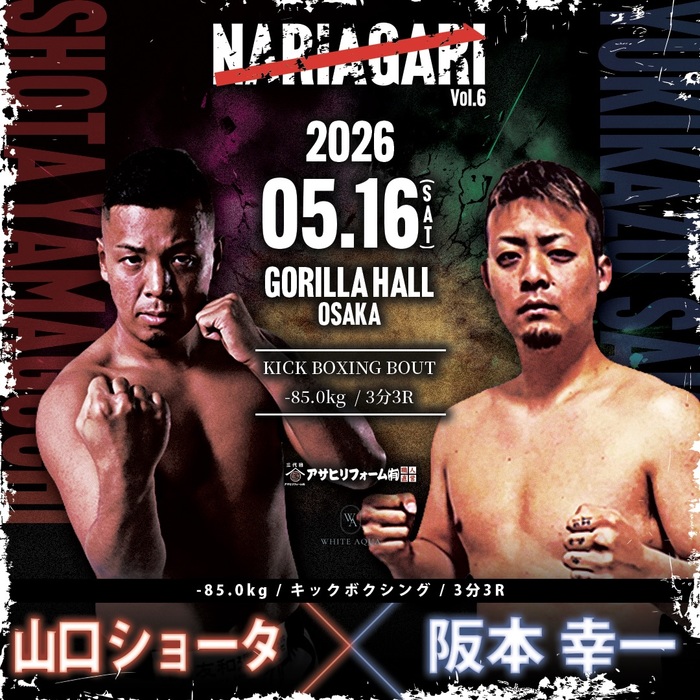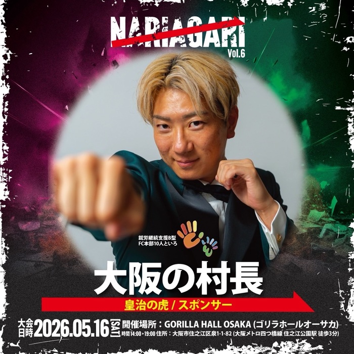 2026年5月16日(土)大阪・ゴリラホール『NARIAGARI vol.6』の対戦カードが発表された。
