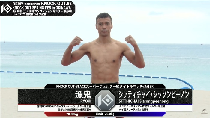 2026年4月18日(土)沖縄コンベンションセンター『REMY presents KNOCK OUT.63 KNOCK OUT SPRING FES IN OKINAWA』(U-NEXT配信)の前日公開計量が、17日(金)沖縄・宜野湾市のトロピカルビーチで行われた。