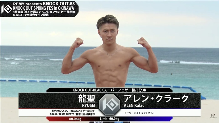 初参戦のクラークは「明日はリングでサムライの精神をKNOCK OUTの舞台で見せます。頑張ります」とし、龍聖は「今日計量終わって明日まで全集中で、明日勝つことだけ考えて仕事したいと思います。僕のパフォーマンスを楽しみにしていてください」とコメントした。