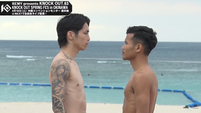 2026年4月18日(土)沖縄コンベンションセンター『REMY presents KNOCK OUT.63 KNOCK OUT SPRING FES IN OKINAWA』(U-NEXT配信)の前日公開計量が、17日(金)沖縄・宜野湾市のトロピカルビーチで行われた。