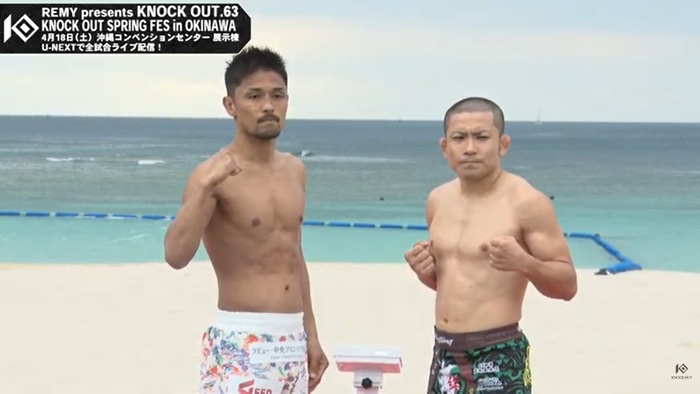 2026年4月18日(土)沖縄コンベンションセンター『REMY presents KNOCK OUT.63 KNOCK OUT SPRING FES IN OKINAWA』(U-NEXT配信)の前日公開計量が、17日(金)沖縄・宜野湾市のトロピカルビーチで行われた。