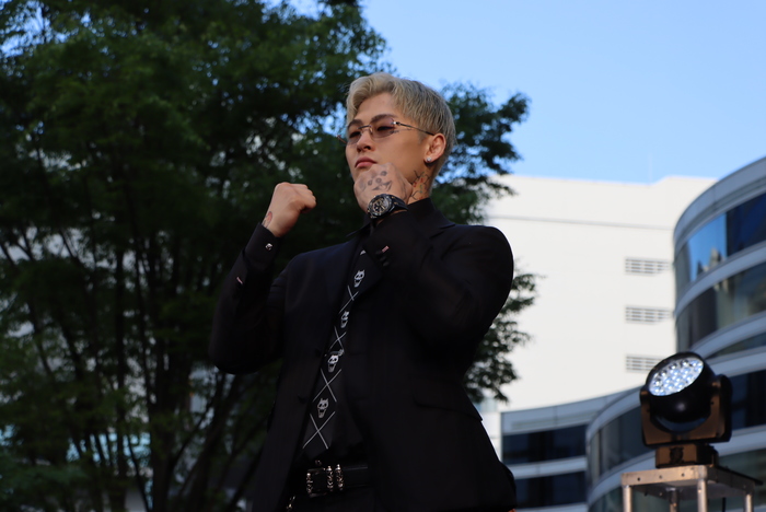 YA-MANが集まった大勢のファンに「どっちの方がいいですか?」と問いかけると、場内からは「坊主!」の声。YA-MANは「じゃあ、これから坊主でいきます」と坊主宣言。