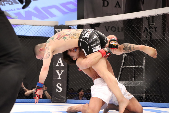 判定3-0(19-19マスト石原×3)で、佐藤将光セコンドの石原が、グレイシーテクニクスのレオンに競り勝った。