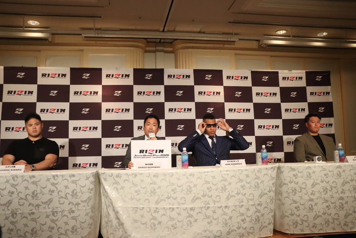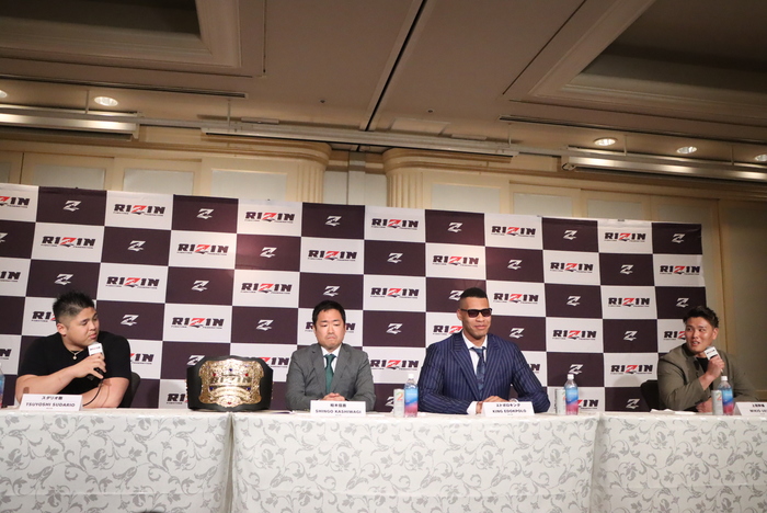会見には、柏木信吾タレントリレーションズが「チャーリー柏木RIZINマッチメーカー」として出席。出場選手として上田幹雄(BRAVE)、スダリオ剛(HI ROLLERS ENTERTAINMENT/PUREBRED)、エドポロキング(ROOTS GYM)の3選手が登壇した。