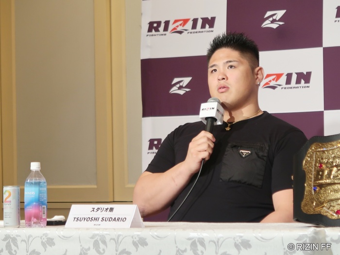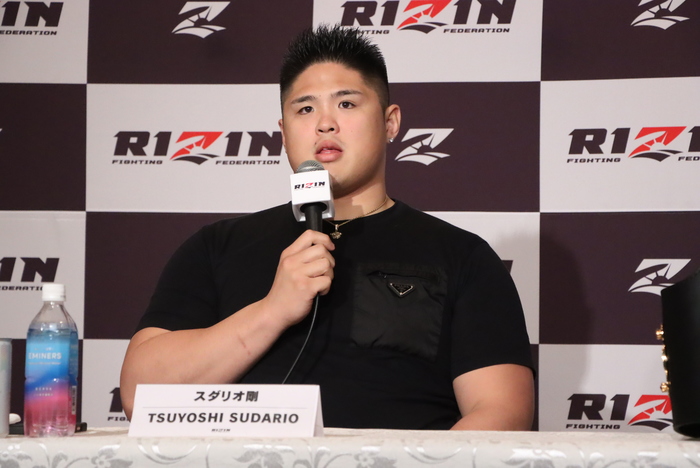 スダリオは「昨年のGPは僕がクソつまらない情けない試合をしてしまって、それがGPの失敗に終わった原因だと正直思っています。そこも十分に自覚していますし、僕も海外の強い選手を入れて試合をするのがいいなと思っていたんですけれど、まず盛り上げないと意味がないので。RIZIN側と話をさせてもらった時にエドポロ選手と、上田にもやり返したいし、入れてやりたいですって僕の意思も伝えさせてもらって。それがこうやって実って本当に良かったと思ってます。今回は去年みたいなクソつまらない試合ではなく、また一皮剥けたバチバチなぶっ殺しに行くようなスタイルで行くのでよろしくお願いします」との意気込み。