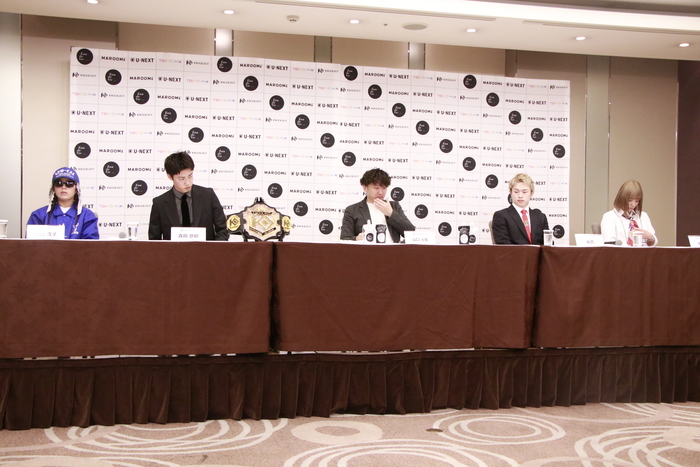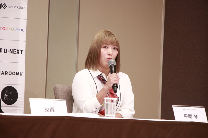 最後に平岡は「私の試合を見るのが初めての方も多いと思うので、平岡琴がKNOCK OUTに来てよかったと思ってもらえるような試合をして、しっかりベルトを巻きたいと思っているので、応援をよろしくお願いします」、山田は「さっきも言ったんですけれど、仲間と応援してくれる皆さんと獲ったベルトなので、絶対に何が何でも守るっていう気持ちはある。でも試合は攻め攻めで面白い試合して盛り上げようと思ってるので、応援よろしくお願いします」と、それぞれファンへメッセージを送った。
