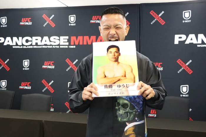 「対戦相手の佐藤ゆうじ選手の印象は、危険生物に例えると(笑)、僕そんな詳しくないんですけど(笑)、寝技が強くて絡みついてくる毒ヘビみたいな感じだなと思いました。なので、僕はマングースになって喉元を掻っ切ってやろうと思ってます。試合が決まった時は……前回、神部(篤坊)選手とやったんですけど、若手の強い選手が来たなと思って。でも、このままちょっと踏み台にされるのは癪にさわるし、それこそ田嶋(椋)選手が持ってるベルトも全然諦めてないんで、ここはしっかり勝って頑張ろうかなと思ってます」