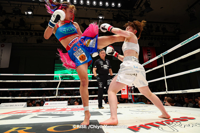 RISEでの2戦目を迎える桃花(右)、3位の辻井と対戦する(C)RISE