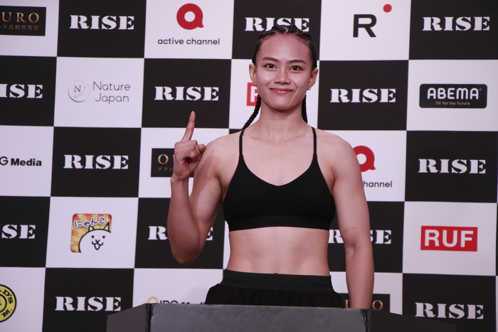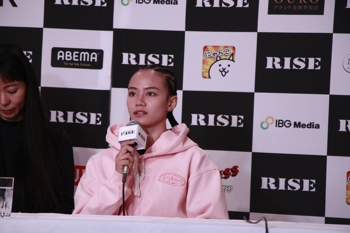 続いての会見でRISE初参戦となる元K-1初代女王パヤーフォンは「今回RISEの試合に参加することができ、大変嬉しく、また光栄に思います。明日の試合については緊張はしていますが、相手のことを非常に強い選手だと思っていますので、全力で試合に挑みたいと思います」と挨拶。