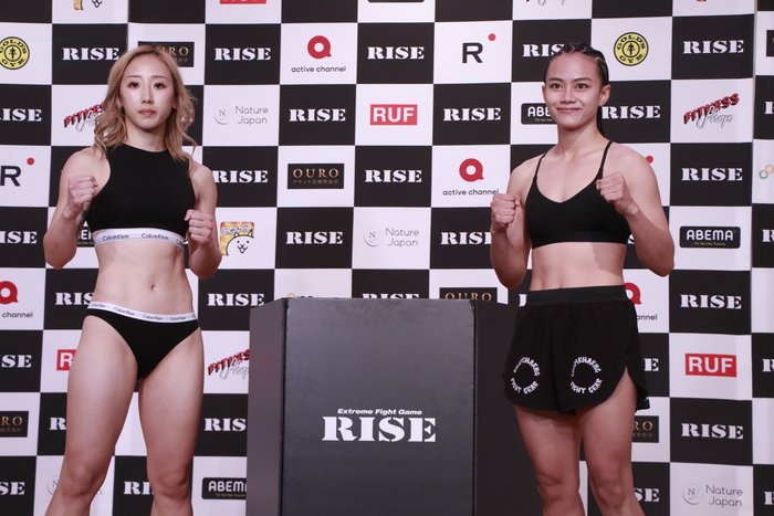 メインイベントのSuperFight! -48kg契約3分3R延長1Rで対戦する、RISE QUEENミニフライ級王者・宮本芽依(KRAZY BEE)は47.8kg、初代K-1 WORLD GP女子アトム級王者パヤーフォン・バンチャメーク(タイ/Banchamek Gym)は47.55kgでそれぞれパス。