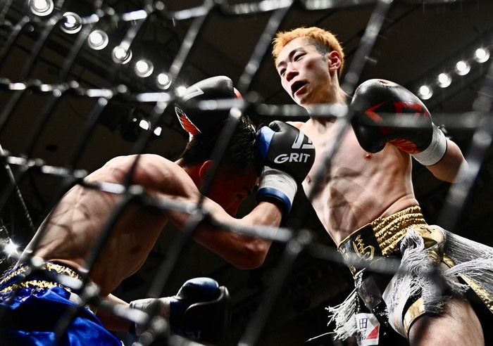 3R、ワンツーからヒザを突く仙波は右ミドル、右フック、左ハイ。竹内はガード上に左右ラッシュ。距離を詰めての連打に仙波がダウン。立つ仙波はヒザで打ち返すがゴング。