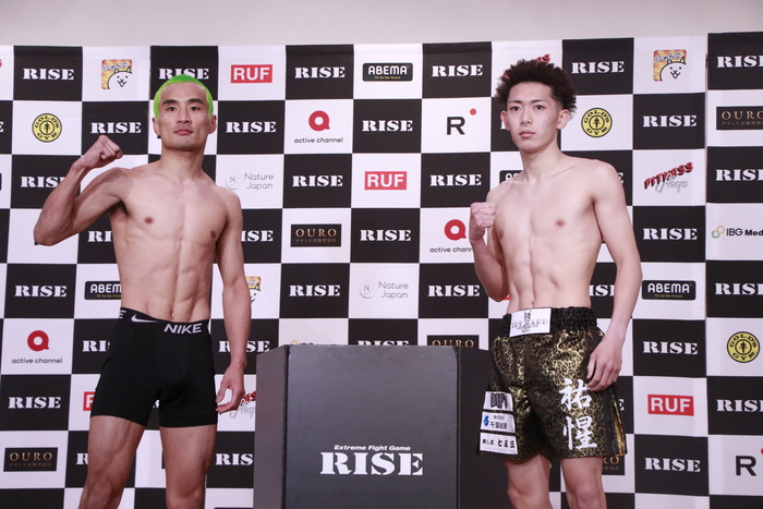第7試合のバンタム級(-55kg)3分3R延長1Rで対戦する、同級3位・加藤有吾(RIKIX)は54.95kg、同級13位・堀本祐惺(TRY HARD GYM)は54.8kgでそれぞれ計量をパス。