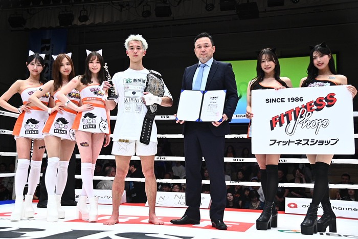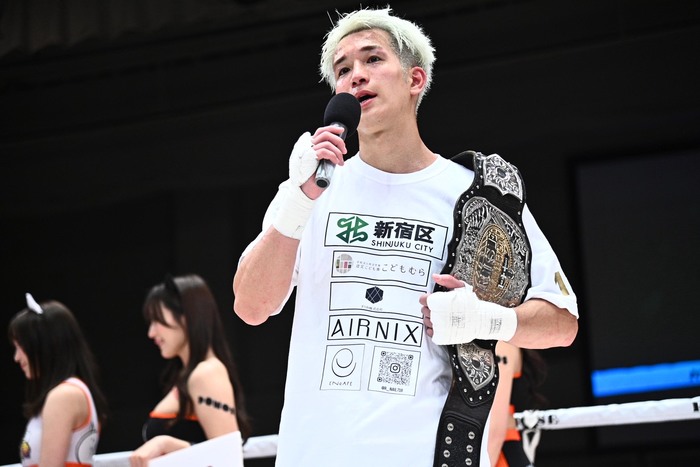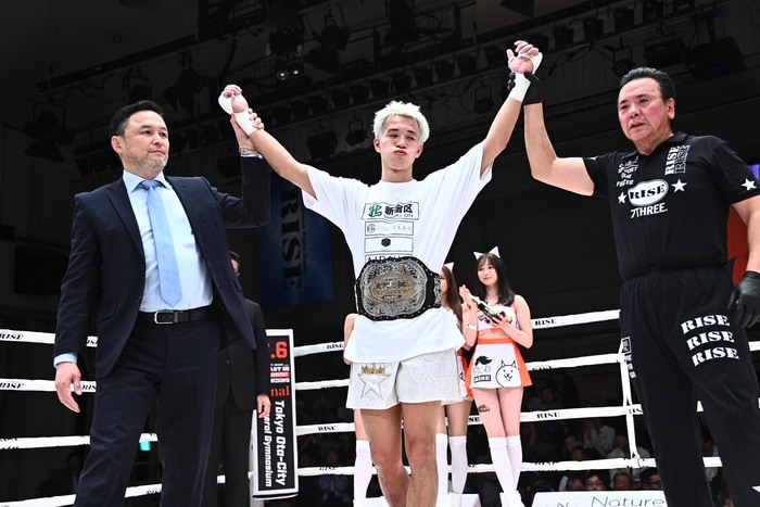 塩川はマイクを持つと「ここまで支えてくれた家族や仲間、今まで頑張ってくれた皆さんありがとうございます。全然思った通りに動けなかったんですが、RISEらしい試合は出来たのかなと思います。ここまで負けてばかりだったんですけれど、諦めないで信じてやってきて、やっとチャンピオンになることが出来ました。自分がやることやってたらいつか目標を達成できると思うので一緒に頑張りましょう」と、涙にむせびながら語った。