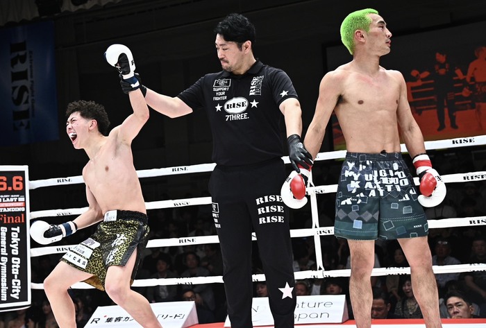 判定は左の蹴りを当てていった堀本の勝利に。上位ランカーの加藤を破る番狂わせを起こした。