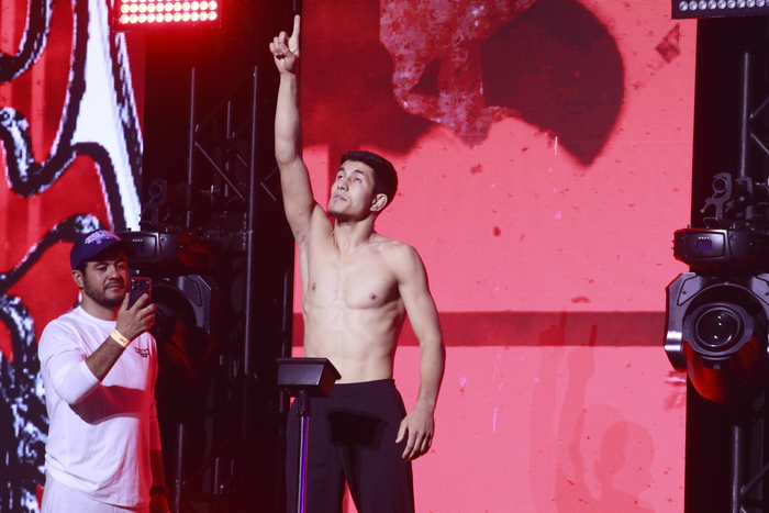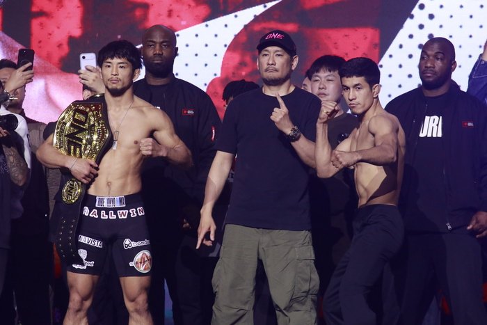 第14試合のONEフライ級(-61.2kg)MMA世界タイトルマッチ5分5Rでアバズベク・ホルミルザエフ(ウズベキスタン)の挑戦を受けて2度目の防衛戦に臨む王者・若松佑弥(日本/TRIBE TOKYO MMA)と、第13試合のONEアトム級(-52.2kg)ムエタイ世界タイトルマッチ3分5Rで挑戦者ソンチャイノーイ・ゲッソンリット(タイ)の挑戦を受けての初防衛戦に臨む吉成名高(エイワスポーツジム)の日本人2王者も、気迫あふれるフェイスオフを見せた。