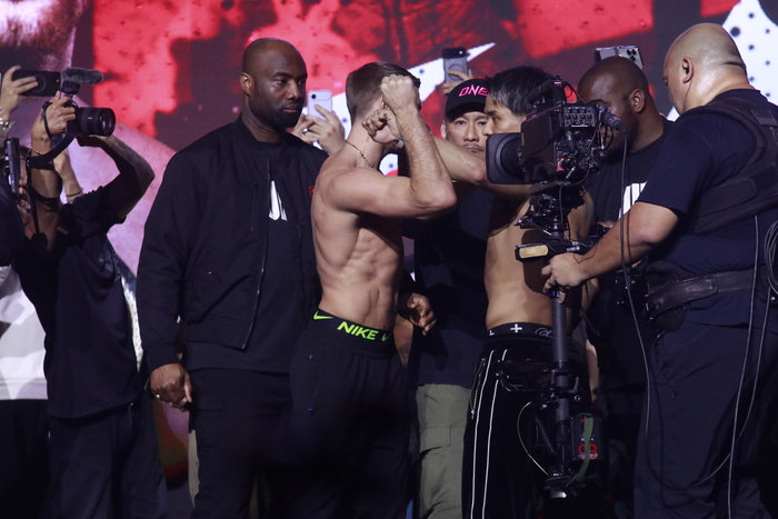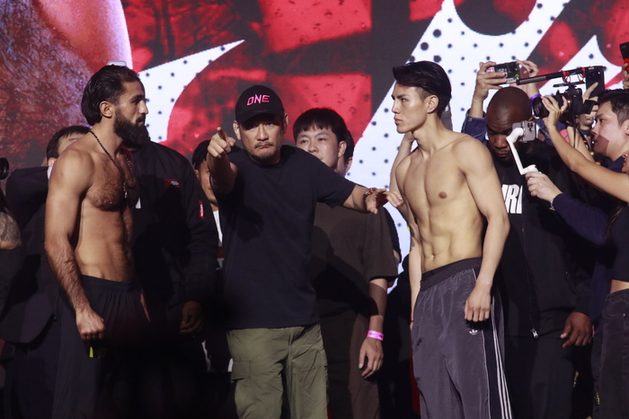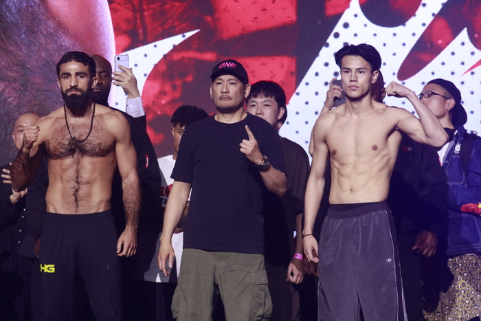 第12試合のONEバンタム級(-65.8kg)キックボクシング世界タイトルマッチ3分5Rで対戦する王者ジョナサン・ハガティー(英国/Knowlesy Academy/Team Underground)と挑戦者の与座優貴(team VASILEUS)、昨年3月の日本大会で試合が当日に中止となった因縁がある第11試合のONEフェザー級(-70.3kg)キックボクシング3分3Rで対戦する海人(TEAM F.O.D)とマラット・グレゴリアン(アルメニア)は、フェイスオフで特に激しいにらみ合いを見せた。