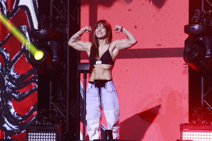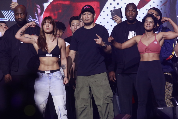 今大会で行われる女子マッチの2試合、第10試合のONE女子アトム級(-52.2kg)MMA 5分3Rで対戦する三浦彩佳(TRIBE TOKYO MMA)と澤田千優(IDEA ASAKUSA)、第7試合のONE女子アトム級(※52.2kg)MMA5分3Rで対戦する平田樹(フリー)とリトゥ・フォガット(インド)もフェイスオフに臨んだ。