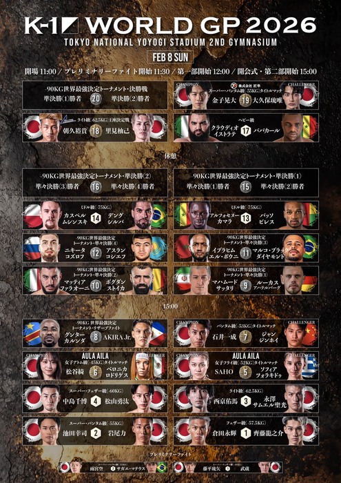 - K-1K-1 WORLD GP 2026~ -90kg世界最強決定トーナメント~2026年2月8日(日)東京・国立代々木競技場第二体育館