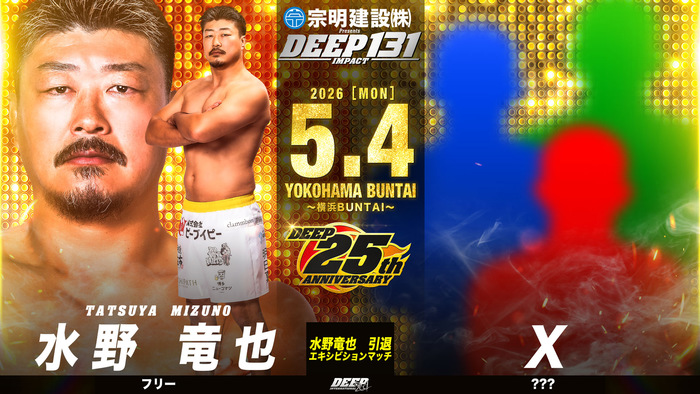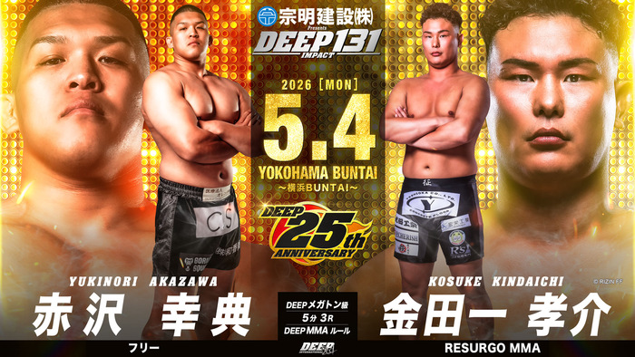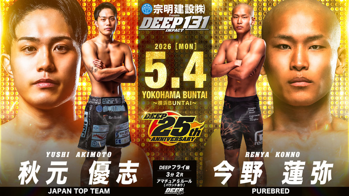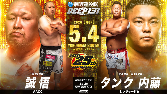 - ニュースMMA2026.03.11【DEEP】5月4日(月・祝)横浜BUNTAIで25年振りにDEEPが開催決定!“総合格闘技のおもちゃ箱”から国内最高峰の戦いへ2026年5月4日(月・祝)、神奈川・横浜BUNTAI にて『宗明建設Presents DEEP 131 IMPACT 25th Anniversary』の開催が発表された。 横浜文化体育館での大会は、DEEPの関東初上陸となった2001年8月18日の『DEEP2001 in YOKOHAMA(DEEP 2)』以来、25年ぶり。当時は、メインでパウロ・フィリョと近藤有己が対戦。セミでジョン・ホ