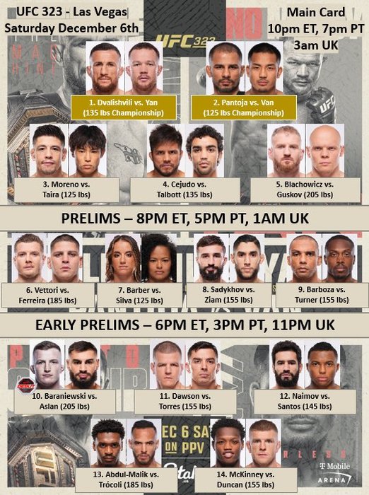 - MMAUFC 320: Ankalaev vs. Pereira 22025年10月5日(日)T-Mobile Arena, Las Vegas, Nevada