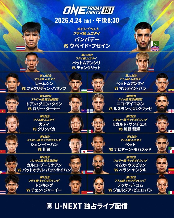 2026年4月24日(金)タイ・ルンピニースタジアム『ONE Friday Fights 151』(U-NEXT配信)に、今週は日本人選手2名が出場する。  第1試合のONEストロー級(-56.7kg)キックボクシング3分3Rで、礼司(楠誠会館)がシェン・イーハン(中国/Sheng Li Ren He)と対戦。 【写真】MA日本キックでヒジありの王者にも輝いた礼司(C)MA日本キックボクシング連