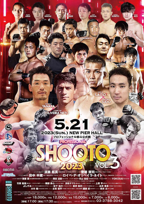 - ニュースMMA2023.05.01【修斗】“キラー”ロイベが再来日で世界5位・田中半蔵と対戦、“レッグハンター”須藤拓真vs.直近6戦負け無しの齋藤奨司、齋藤翼、児山佳宏、YOKOSAIも=5.21 ニューピアホール全10カード決定17年振りにリスタートを切る女子修斗「COLORS Produce by SHOOTO」の旗揚げ戦が話題の 5.21 ニューピアホールプロ修斗昼夜大会。第二部(17:30開始)となる「PROFESSIONAL SHOOTO 2023 Vol.3」の全対戦カードが発表された。 注目はなんと言っても、田中半蔵vsロイベ・デ・オリベイラ・ネイトの国際戦と須藤拓真vs齋藤奨司のランキングマッチ。 ▼フ