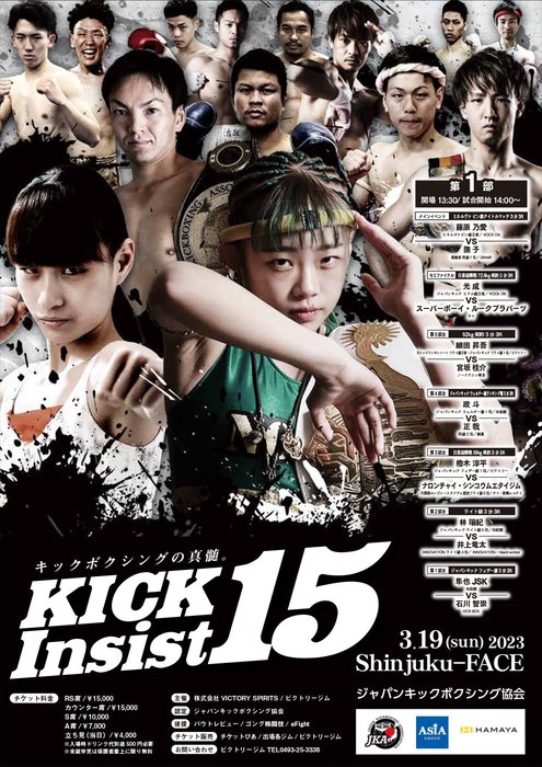 2023年3月19日(日)東京・新宿FACEで開催されるジャパンキックボクシング協会主催『KICK Insist15』の全対戦カードが発表された。今大会は昼の部(14:00開始)と夜の部(18:00開始)の昼夜興行で行われる。