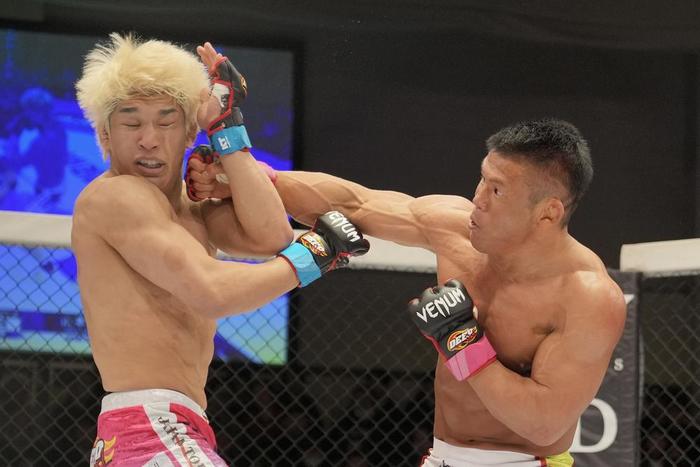 牛久は、元DEEP&RIZINフェザー級王者。2020年9月にDEEPフェザー級王者の弥益ドミネーター聡志に判定勝ちで戴冠すると、2021年10月のRIZINフェザー級タイトルマッチで斎藤裕に2R TKO勝ちで2団体王者に。4連勝で迎えた2022年10月のRIZIN王座防衛戦でクレベル・コイケに一本負けで王座陥落した。