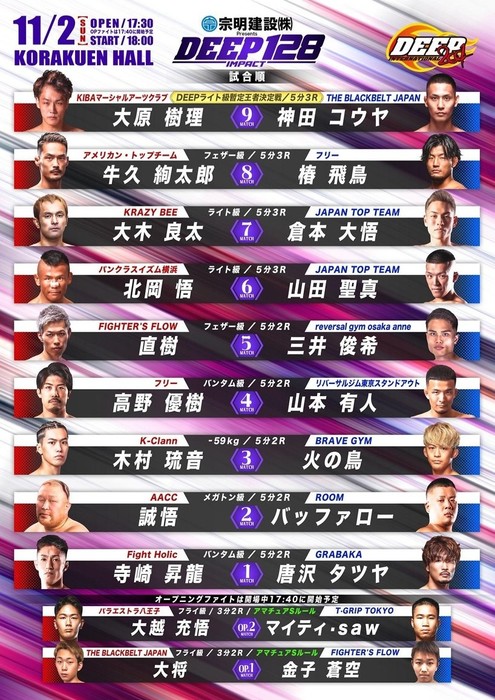 2025年11月2日(日)、東京・後楽園ホールにて『宗明建設 Presents DEEP 128 IMPACT』が開催される。
