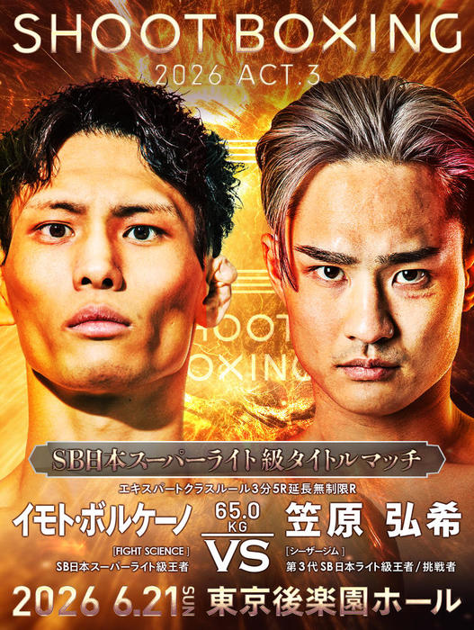 2026年6月21日(日)東京・後楽園ホール『SHOOT BOXING 2026 act.3』(U-NEXT配信)の追加対戦カードが発表された。今大会では三大タイトルマッチが行われる。