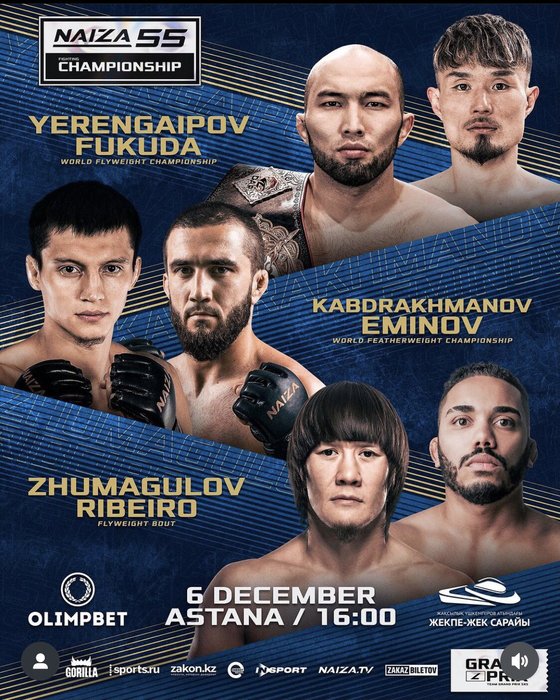 2023年12月6日(水 ※2日から変更)、カザフスタン バリスアリーナにて開催される『Naiza FC 55』にて、元修斗世界フライ級王者で現DEEPフライ級暫定王者、DEEPフライ級GP優勝の福田龍彌(MIBURO)が、「Naiza FCフライ級選手権試合」(5分5R)として、王者ディアス・エレンガイポフ(カザフスタン)に挑戦することが発表された。